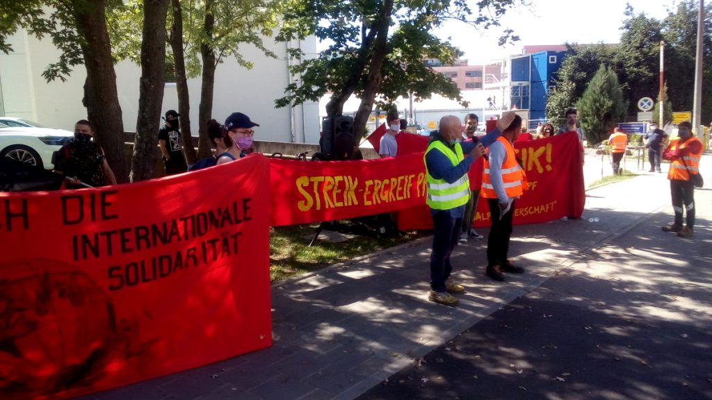 Nach dem verwirrenden Ablauf der Solidaritätskundgebungen am 06.08.20 und der unvollständigen Berichterstattung, möchten wir versuchen, die Ereignisse, sowie unsere politische Einschätzung und Haltung dazu klarzustellen. Es hat, vor allem aufgrund personeller Engpässe und persönlicher Verwirrung, nicht so geklappt, wie wir uns das in Zukunft wünschen. Trotzdem halten wir den sofortigen Einsatz im Falle von Arbeitskämpfen für zwingend notwendig. Aus den Fehlern, die bei diesen zwangsläufig überstürzten Aktionen entstehen können, möchten wir lernen.Nach den ersten Pressemeldungen Mittwoch Mittag über die streikenden Bauarbeiter, haben wir sofort vorort Kontakt zu ihnen aufgenommen, um mehr über ihre Situation und Forderungen zu erfahren. Die Kommunikation war schwierig, aber der Sprecher der Gruppe erklärte uns auf Englisch, dass die Arbeiter aus Ägypten für ein Italienisches Unternehmen arbeiten, welches zusammen mit einigen anderen Subunternehmen mit dem Bau des „Königstor“ Komplexes beauftragt wurde, sowie ihre Forderung daraus bestand, die seit zwei Monaten ausbleibenden Zahlungen zu erhalten. Über unser Angebot, eine Solidaritätskundgebung zu organisieren, freuten sich sowohl der Sprecher, als auch seine Kollegen, für die er übersetzte. Mit diesem Informationsstand haben wir für den nächsten Tag Kundgebungen angemeldet. Die Zielsetzung der ersten Kundgebung, um 11:30 Uhr vor der Baustelle, war es, den Streikenden Unterstützung zu zeigen, aber vor allem auch andere Bauarbeiter*innen zu erreichen, um den Streik möglichst auszuweiten. In diesem Rahmen nahmen wir am Donnerstag Vormittag auch vereinzelt Kontakt zu Bauarbeiter*innen anderer Regensburger Baustellen auf, um ihre Sichtweise zu erfahren und sie über den Streik zu informieren. Zudem war die Uhrzeit 11:30 Uhr so gewählt, in der Hoffnung, dass wir um 12 Uhr auch mit nicht-streikenden Arbeiter*innen in ihrer Mittagspause Kontakt aufnehmen könnten. Das funktionierte auch.Leider hatten wir vor der Kundgebung nicht mit allen Kundgebungsteilnehmer*innen eine einheitliche Position ermittelt. Wir sehen es als absolute Pflicht aller, sich dem Kampf gegen Kapitalist*innen anzuschließen. Alles andere ist eine Form von Streikbruch, auch wenn nicht die eigene Branche betroffen ist. Allerdings müssen wir realistisch genug sein, um zu verstehen, dass dies schlichtweg nicht jeder Person möglich ist, beziehungsweise dass es arrogant ist, diese Einstellung von außen, von tatsächlich beteiligten zu verlangen. Da wir allen Kundgebungsteilnehmer*innen freies Rederecht gaben, kam es zu an alle nicht-streikenden Bauarbeiter*innen gerichtete Beleidigungen. Das unterstützen wir in keinster Weise. Die Ausbeutungsmechanismen sind so erdrückend und komplex, dass dieses Verhalten von weltfremder Überheblichkeit zeugt. Die Kapitalist*innen in Form der Unternehmensleitung bedienen sich aller Mittel, die unser imperialistisches Wirtschaftssystem ihnen bietet, um die Arbeiterschaft zu spalten. Die Schuld dafür bei anderen Arbeiter*innen zu finden, halten wir für von Grund auf falsch. Allerdings gelang es dann in der Mittagspause, mehr Informationen über die Lage zu erhalten. Einerseits konnte sich ein Mitglied der SRA auf italienisch mit den Streikenden unterhalten, außerdem kam ein Gespräch mit nicht-streikenden Arbeiter*innen des selben Subunternehmens zustande. Dabei wurde klar, dass Lohnzahlungen an die Arbeiter*innen teilweise stattgefunden hatten, dass aber das Subunternehmen aufgrund angeblicher Nichterfüllung des Vertrages nicht bezahlt wurde. Einer der Arbeiter, der seinen Lohn anscheinend dennoch erhalten hatte, erklärte ausdrücklich, dass er und seine Kolleg*innen sich deshalb nicht dem Streik anschließen würden, weil das ihre Chefs seien, die streiken. Diese würden nur für ihr eigenes Unternehmen eintreten, würden sich aber nicht um die Interessen ihrer Angestellten kümmern. Die Streikenden stellten es auf Nachfrage so dar, dass sie sich tatsächlich, so der Wortlaut, als die „Bourgeoisie“ sehen, und dass sie, die Streikenden, der Unternehmungsleitung angehören. Aber aus ihrer Sicht, ist das Unternehmen klein und familiär, sodass die Interessen der Leitung und der Arbeiter*innen nicht voneinander zu trennen sind. All diese Informationen kamen aber nur nach und nach und gestückelt hervor, und die akute Situation machte eine umfassende politische Einschätzung sehr schwierig. Wir fassten also den Beschluss, nach Ende der Mittagspause noch abschließend auf Englisch und Deutsch eine Ansprache zu halten, bevor wir die Kundgebung beendeten. Darin war es uns wichtig klarzustellen, dass wir verstehen, wenn Arbeiter*innen sich nicht mit dem Streik ihrer Chefs solidarisieren und dass ein Streik nicht zum Instrument werden darf im Streit zwischen verschiedenen Kapitalinteressen. Aber betont wurde auch, dass dieses Komplexe Konstrukt von internationalen Unternehmen, Subunternehmen und Arbeiter*innen mit unterschiedlichen Verträgen, die auch noch durch Sprachbarrieren getrennt werden, genau dazu dient, die Bauarbeiter*innen und uns Unterstützer zu spalten und gegeneinander auszuspielen. Wir riefen also auch nochmals allgemein dazu auf, diese Spaltung zu überwinden, um nicht nur vertragliche Zahlungen einzufordern, sondern um den Reichtum, der von den Arbeiter*innen erbaut wird, nicht an die Ausbeuter*innenklasse auszuhändigen.Danach kam es zur Entscheidung, die Kundgebung um 18 Uhr abzusagen. Diese war geplant, um den Arbeitskampf in die Mitte der Stadt und der Gesellschaft hineinzutragen und um auch nicht direkt Betroffene zu informieren. Die Absage erfolgte in erster Linie deshalb, weil nur Einzelne SRA Mitglieder vor Ort waren und diese sich nicht zutrauten, die komplexe Sachlage bis zum Nachmittag so aufzuarbeiten, dass wir eine klare und vor allem richtige politische Haltung auf die Straße zu tragen. Ohne dass zu können, erschien es uns arrogant, das Thema für uns zu vereinnahmen und ein