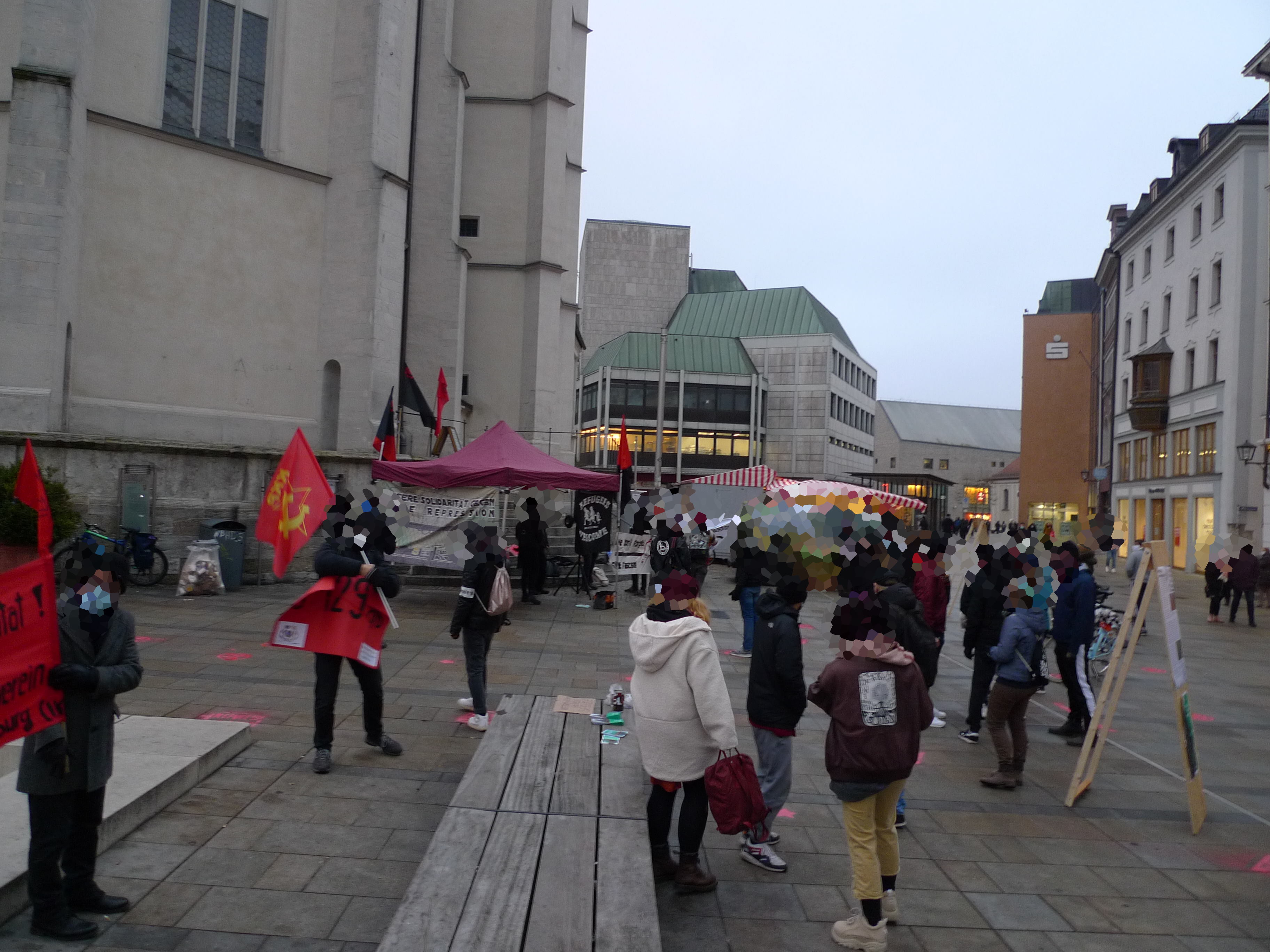 Am 28.11.2020, veranstalteten wir am Neupfarrplatz eine Kundgebung, um Solidarität mit den Angeklagten der Rondenbarg-Prozesse auszudrücken. Wir wurden mit Redebeiträgen unserer Bündnispartner*innen der Resistenza Antifascista Ratisbona, des Aufbruch, des Internationaler Kultur-und Solidaritätsverein Iks-Regensburg, der Anarchistischen Gruppe Regensburg und der Roten Hilfe unterstützt.
