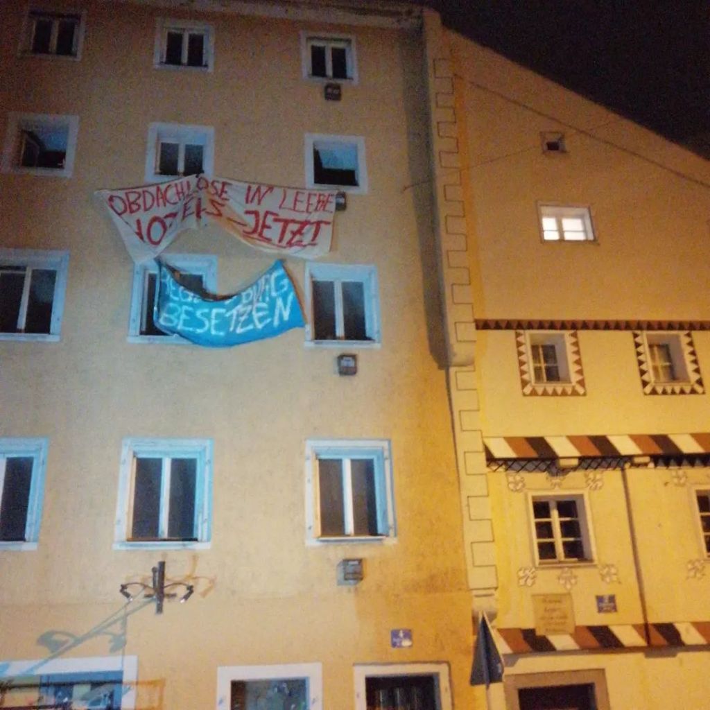 Wir forderten die Unterbringung von obdachlosen Menschen in leerstehenden Hotels, als erster Schritt zur Verbesserung der Lebensumstände obdachloser Menschen und der Überwindung des #Kapitalismus!